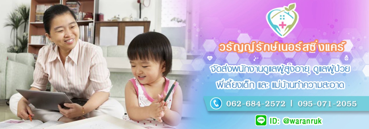 วรัญญ์รักษ์เนอร์สซิ่งแคร์ ดำเนินการจัดส่งพนักงานดูแลผู้สูงอายุ พนักงานดูแลผู้ป่วย พี่เลี้ยงเด็ก และ แม่บ้านทำความสะอาด ให้กับลูกค้าทั่วประเทศ เราได้รับความไว้วางใจ ในการให้บริการลูกค้าด้วยความตั้งใจดีเสมอมา เรามีบริการที่รวดเร็ว ฉับไว ตั้งแต่การนัดสัมภาษณ์ ตลอดจนบริการจัดส่งผู้ดูแลถึงท่าน